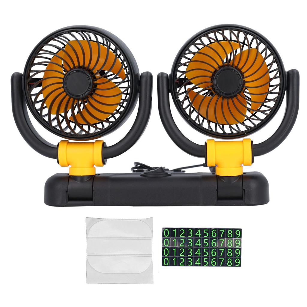 Dual Head Car Fan Adjustable 2 Speed 360 Degree Rotation Dashboard Mount Brushless Motor Portable Vehicle Cooling DC12V