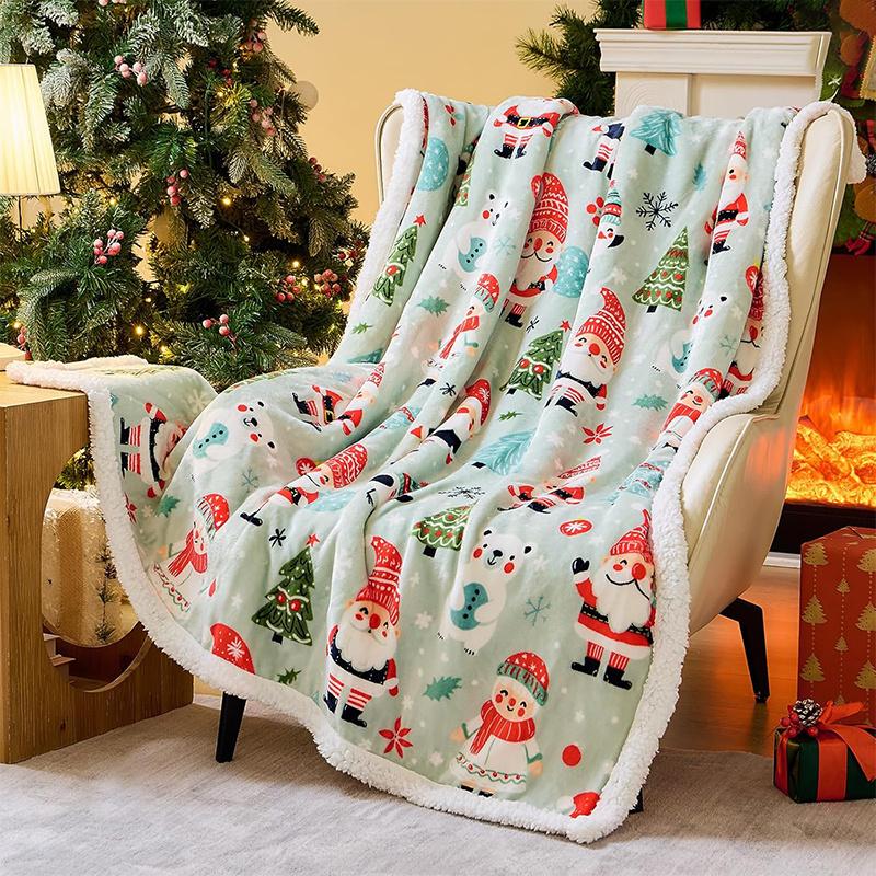 Christmas Throw Blanket Christmas Decorations Gifts For Women Sherpa Flannel Fleece Winter Holiday Blanket For Couch Sofa Bed