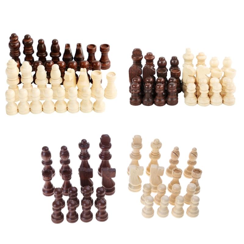32 Stück Holz Internationale Schachfiguren Handgeschnitzt Schachspiel Bauern Figuren Schachbrett Zubehör Langlebig