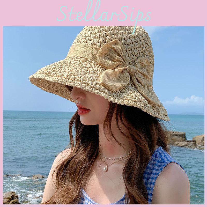 Fashionable Sun Hat For Women Bowknot Design Adjustable Wide Brim For Uv Protection