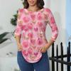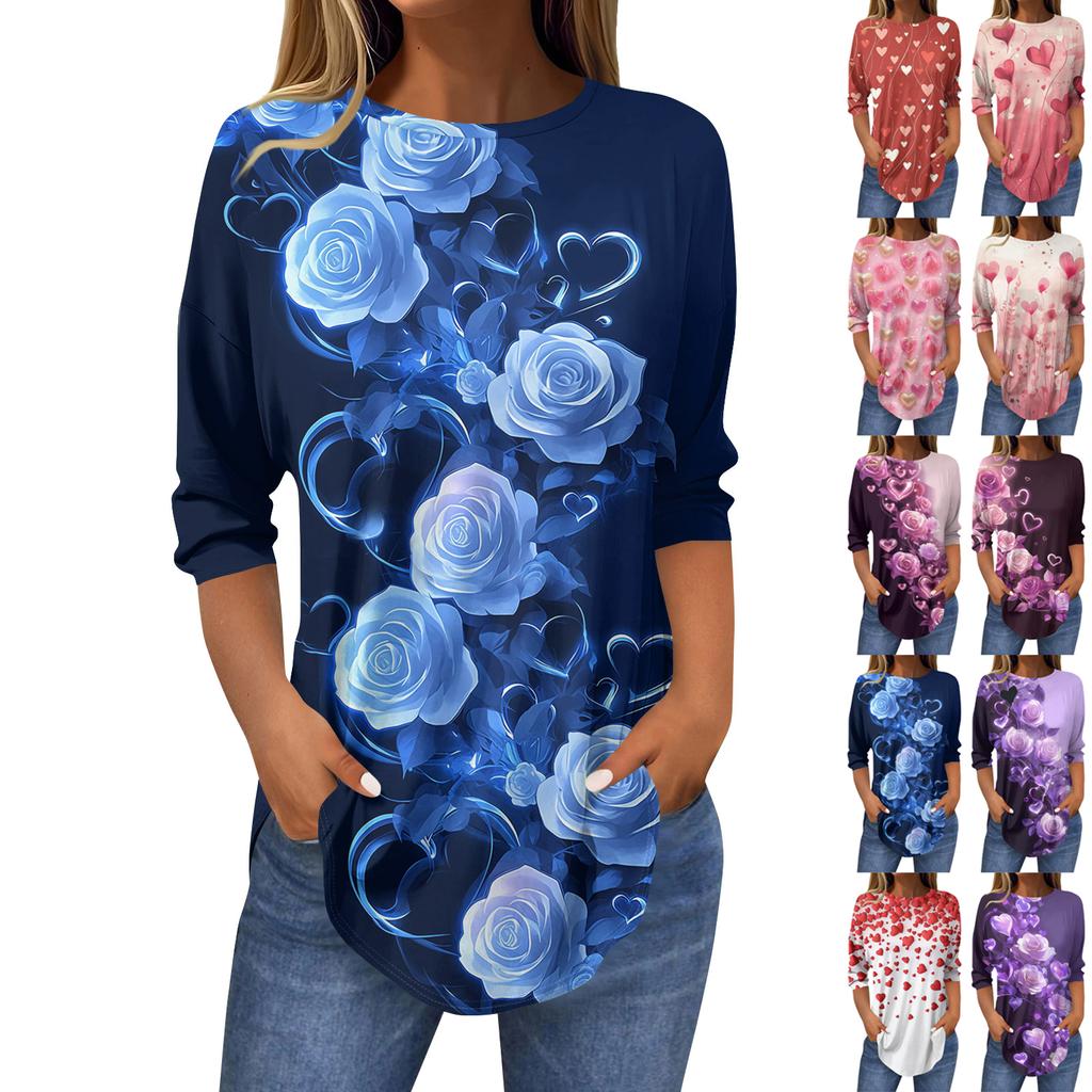 Damen-T-Shirts, 3/4-Ärmel, einfarbig, Pullover, Sommer, Frühling, Tops, Blusen