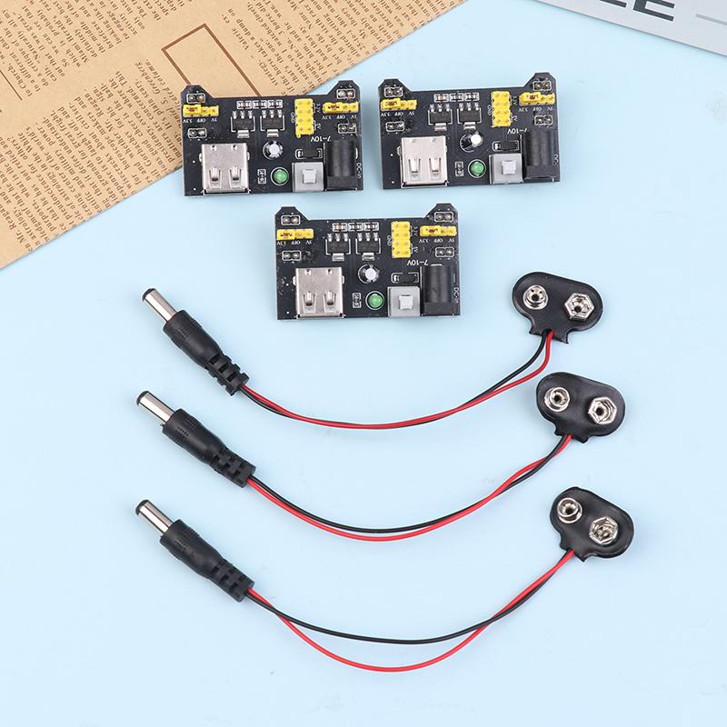 1/3Pcs MB102 Solderless Breadboard Power Supply Module 3.3V 5V With 9V Battery Clip Power Cable 2.1x 5.5mm Male DC Jack Plug