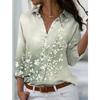 Frühlings- und Herbst Damen Pfirsichdruck Tops Übergröße Locker V-Ausschnitt Langarmshirt