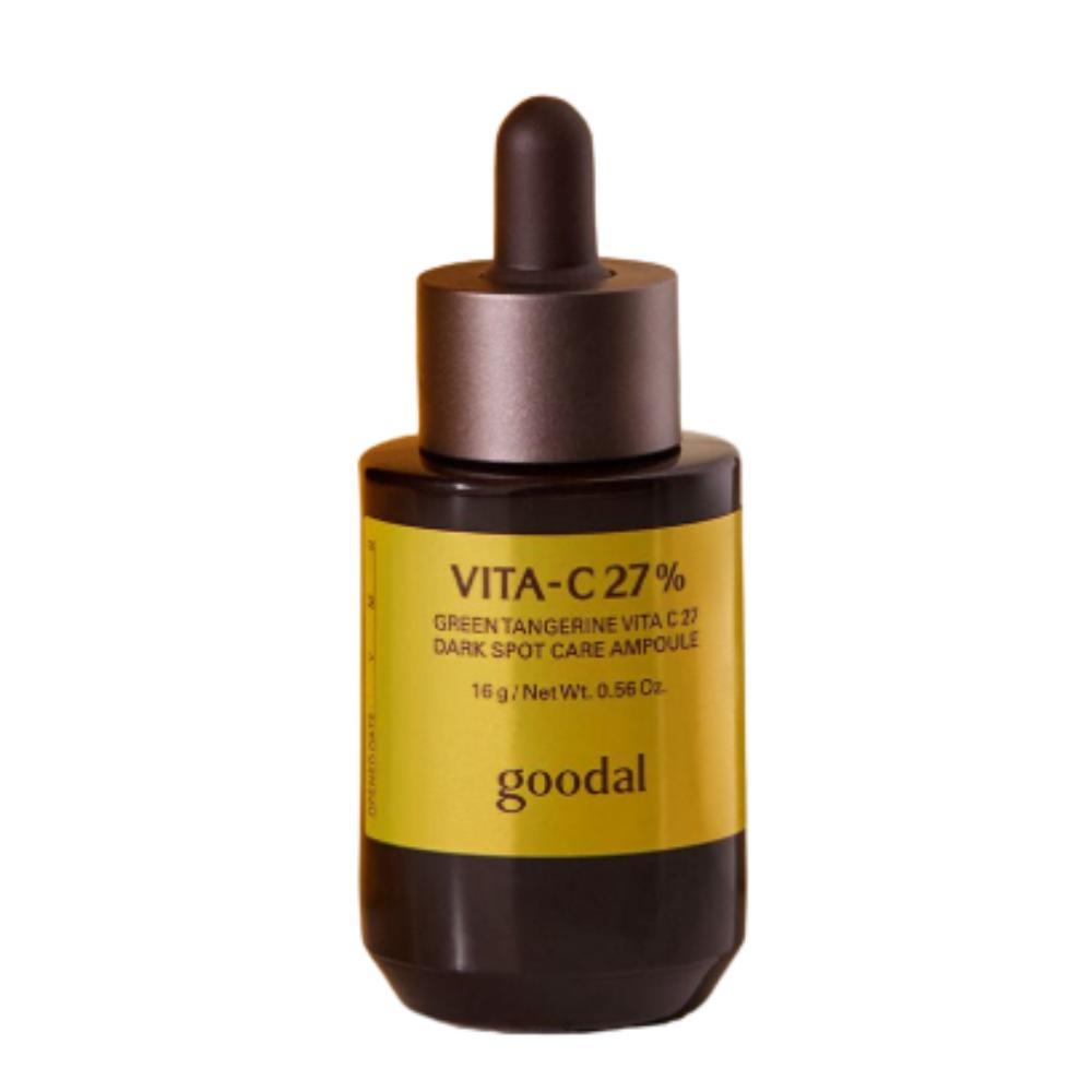 Goodal Vita C27 ampoule, green tangerine brightening serum, high-strength vitamin C ampoule, dark spot fading serum, Korean brightening essence, uneven skin tone treatment