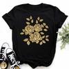 Plus Size Maycaur New Fashion Gold Rose Print Women T Shirt Harajuku Short Sleeves Tshirts Casual O-neck Top Tee Black T-shirt