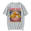 Lustiges Chicken Nuggets Bedrucktes Meme Grafik T-Shirt im Vintage-Stil Damen Hip Hop Gothic T-Shirt Komfortabel Lässig Damenbekleidung