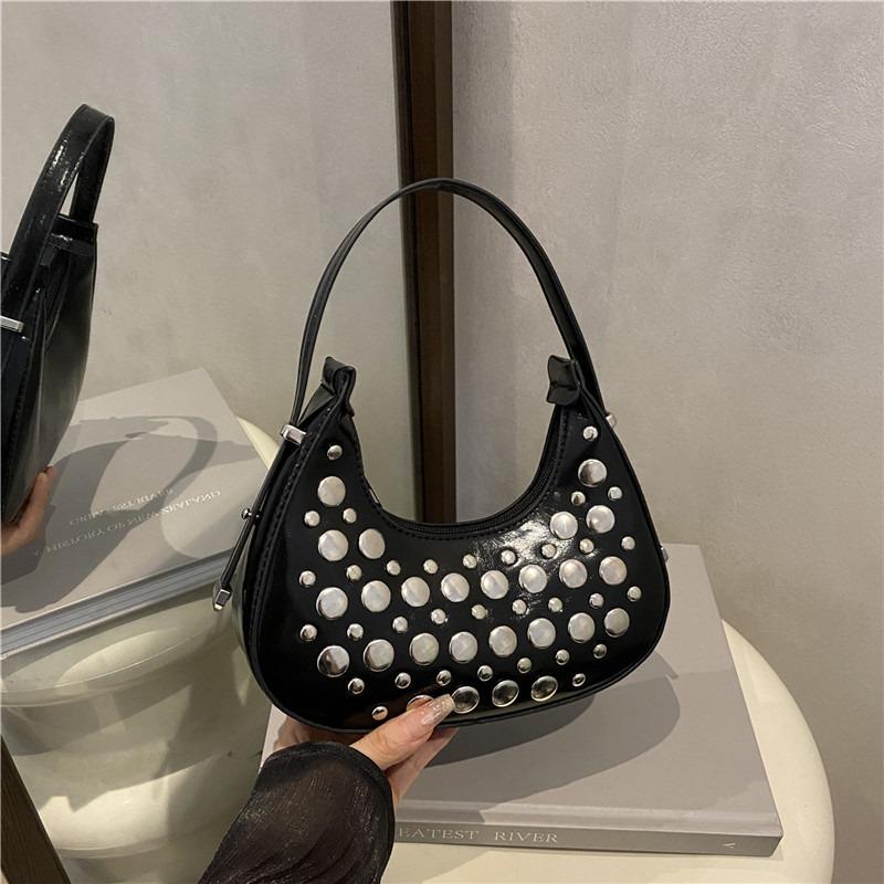 Einfache und modische neue Frühling-Achseltasche, Persönlichkeit, cool, mit Polka-Dot-Nieten, tragbare Knödel-Damentasche