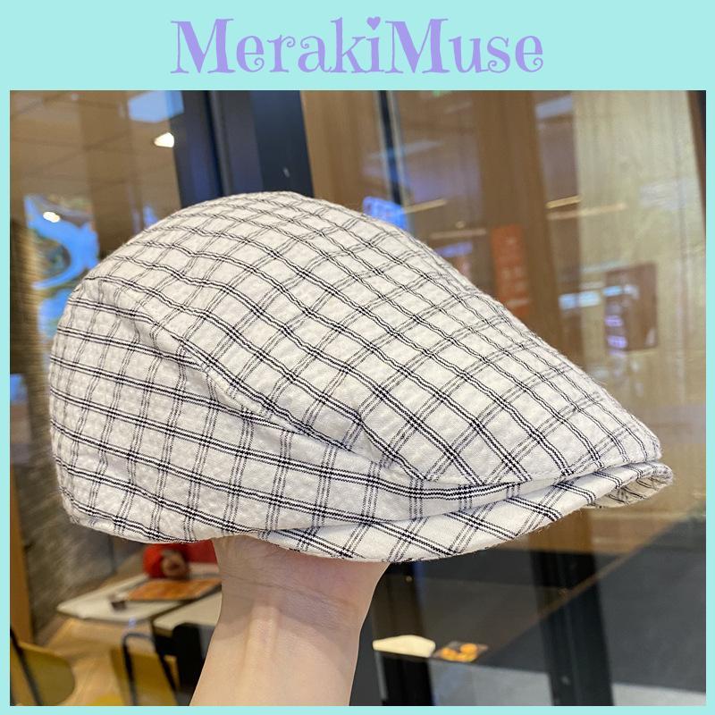 Vintage Girl Grid Beret Hat For Summer Casual Wear With Sunshade And Acrylic Material
