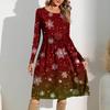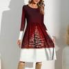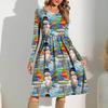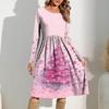 Damen Gradient Bedrucktes Freizeitkleid Frühling Tasche Rundhals Langarm Kleider