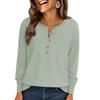 Women Long Sleeve Shirts Fall Clothes Casual Button Up V Neck Tunic Tops Loose Basic Tee