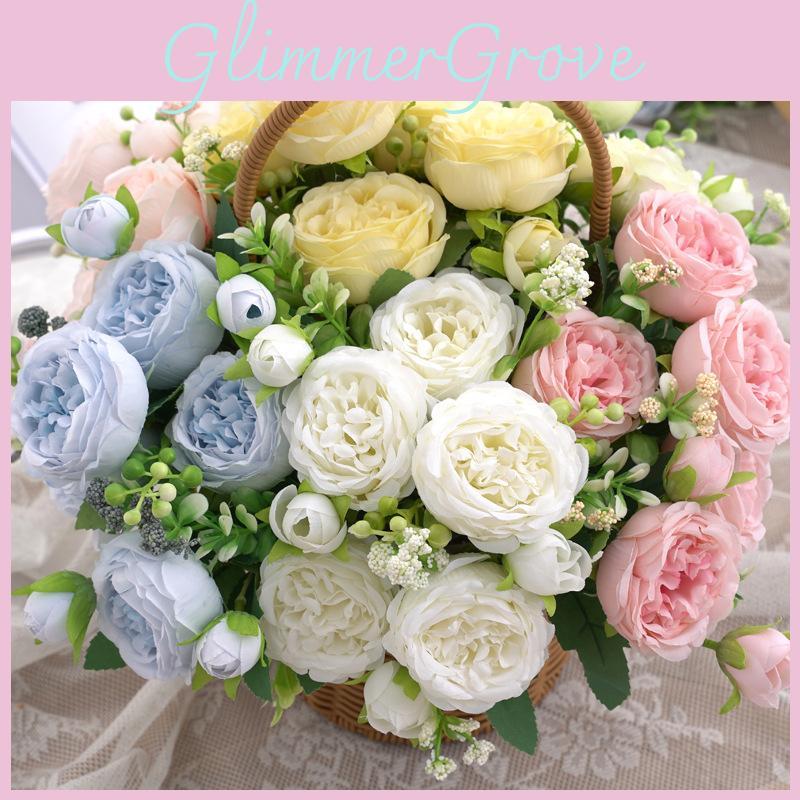 Dieser künstliche Pfingstrosen-Blumenstrauß verfügt über lebensechte Seidenblätter, die mit Präzision gefertigt wurden, um natürliche Blüten nachzubilden.. es zeigt lebendige Farben wie Hellrosa, Weiß, Gelb und Lila und verleiht jedem Raum Eleganz.. Ideal für Hochzeitsdekoration, Wohnaccessoires oder besondere Veranstaltungen, bietet es eine wartungsfreie Alternative zu frischen Blumen.. Einfach mit einem feuchten Tuch abwischen, um das Aussehen zu erhalten.