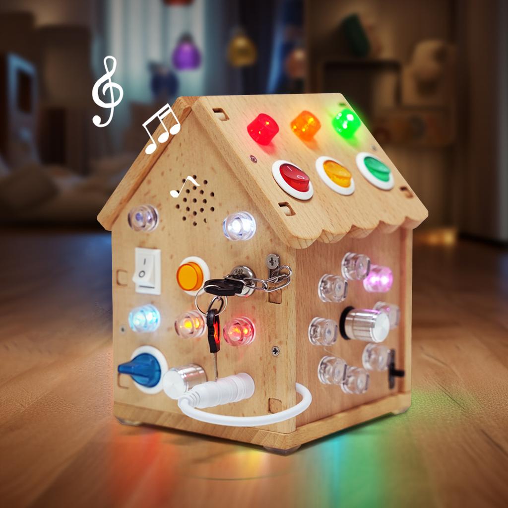 Wooden Led Light Sound And Light Busy House Mechanism Unlocking Power Switch Children'S Montessori Early Education Educational Toys