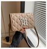 Pu Small Square Crossbody Bag With Silver Letter Decorated Checkered Texture For Daily Casual Women