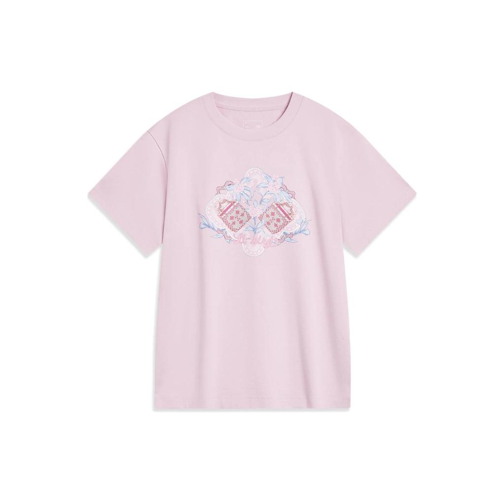 Li-Ning Sport Lifestyle Series Pattern Printed Drop Shoulder T-Shirt Women Tops Lotus-Pink-Purple AHST444-4