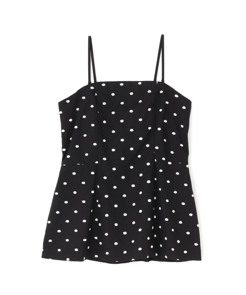 This tunic camisole with an embroidered irregular dot pattern is perfect for sophisticated casual styling without being too sweet. The shoulder straps are detachable, and pairing it with pants made of the same material is also recommended.