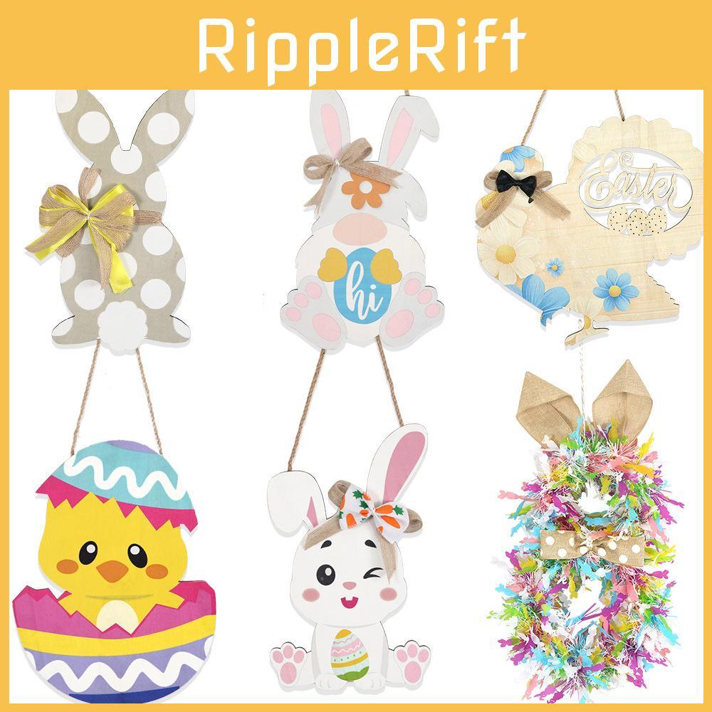 Verspieltes Osterhasen- und Eierschalenhuhn Holzschild für saisonale Heimdekoration