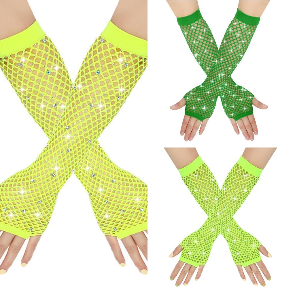Elastische Netzhandschuhe mit Diamanten, Halbfingerhandschuhe