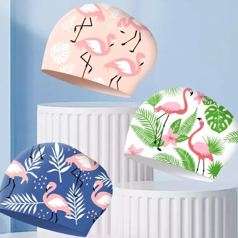 Große Badekappen Damen Mode Druck Ohrenschutz Lange Haare Wasserdicht Silikon Badekappe Badehüte Schwimmzubehör
