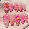 24 Stück Herbst Winter Mandel Aufdrücknägel Luxus 3D Goldene Rosen Retro Rot Französische Falsche Nägel für Frauen Süße Bernstein Blumen Nägel
