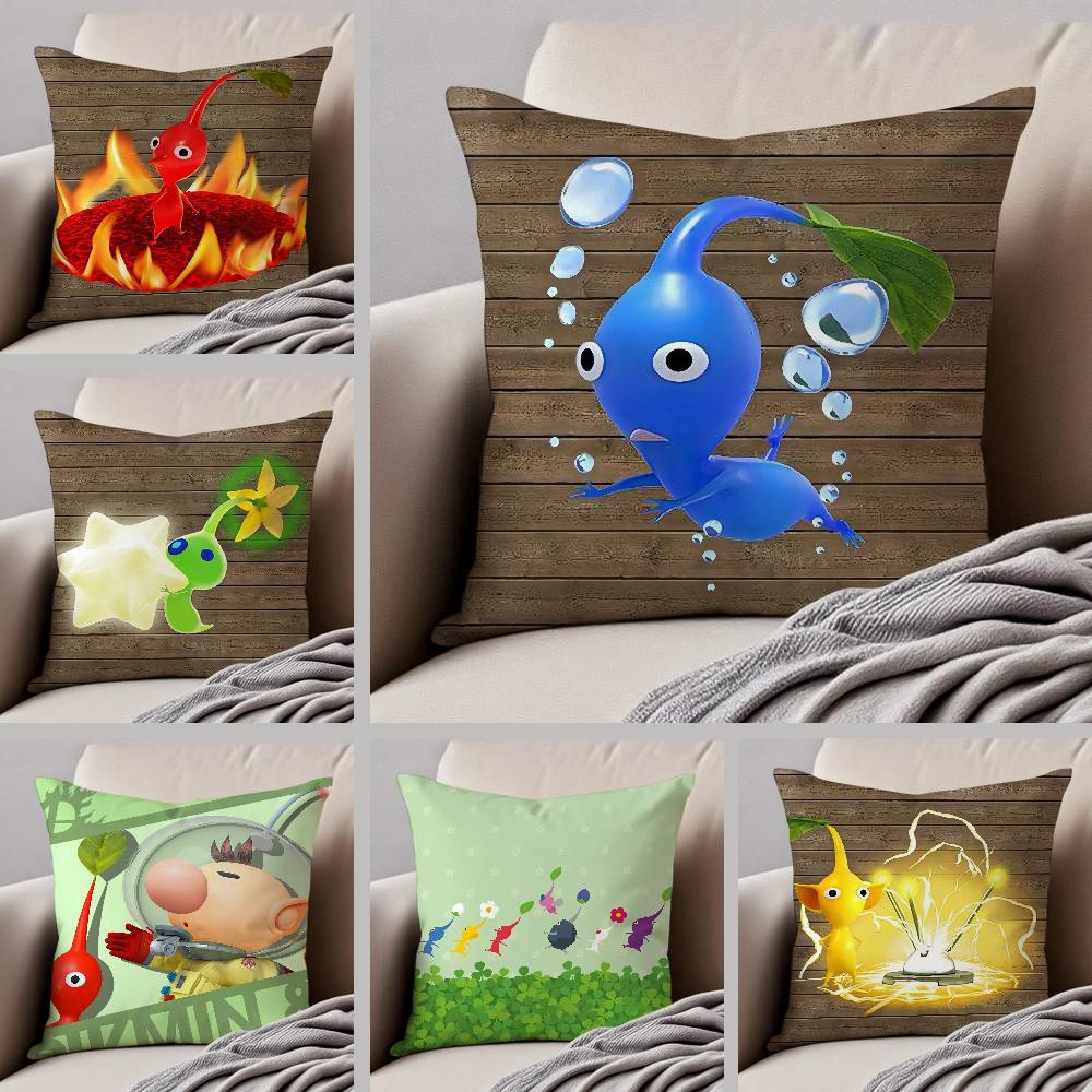 Cartoon Anime P-PIKMINS Kissenbezug Seidig elegant Komfort Sofa Bett Unsichtbarer Reißverschluss Strandkissenbezug