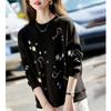 Damen Neuer gespleißter Pullover Rundhals Bestickt Modisch Locker und Vielseitig Lässiges Langarm-Oberteil