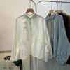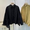Baumwollleinen Langarmhemd für Damen Herbst Locker Vielseitig Einfarbig Lässiges Oberteil