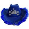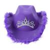 Rhinestones Crown Cowgirl Hat for Woman Male Breathable Cowboy Hats with Plush Trim Banquets Party Photography Hat