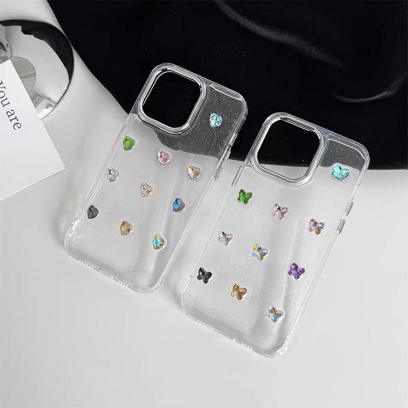 Handyhülle mit farbigen Edelsteinen für IPhone17Promax Feiner Glitzer Ins Style Damenmodell 15 für Apple 14 Transparent