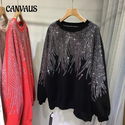 Europäische Krone Hotfix Diamant Pullover - Übergröße, Samtgefüttert, Rundhalsausschnitt, Langarm Luxus Oberteil