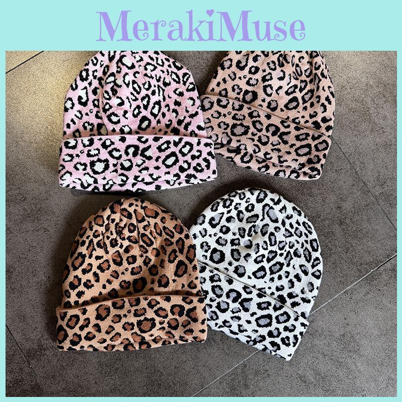 Fashion Knit Hat With Leopard Print Design For Women With Thick Thermal Material For Outdoor Use