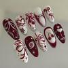 24 STÜCKE Süße Rosa Mandel Aufdrücknägel Valentinstag Niedliches Herz Stern Schleife Französische Falsche Nägel Ins Stil Kirschlippen Falsche Nägel Werkzeuge
