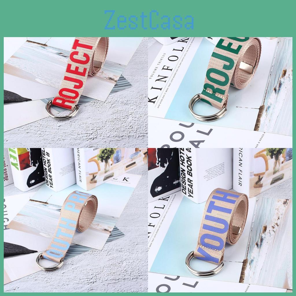 Student Style Nylon Canvas Belt With Letter Print And Double Ring Closure