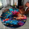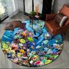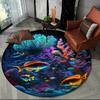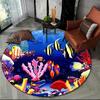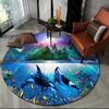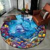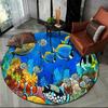 Unterwasserwelt Runder Teppich Cartoon Meeresboden Fisch Delfin Bereichsteppich für Wohnzimmer Schlafzimmer Dekor Rutschfeste Ozeantier Bodenmatte