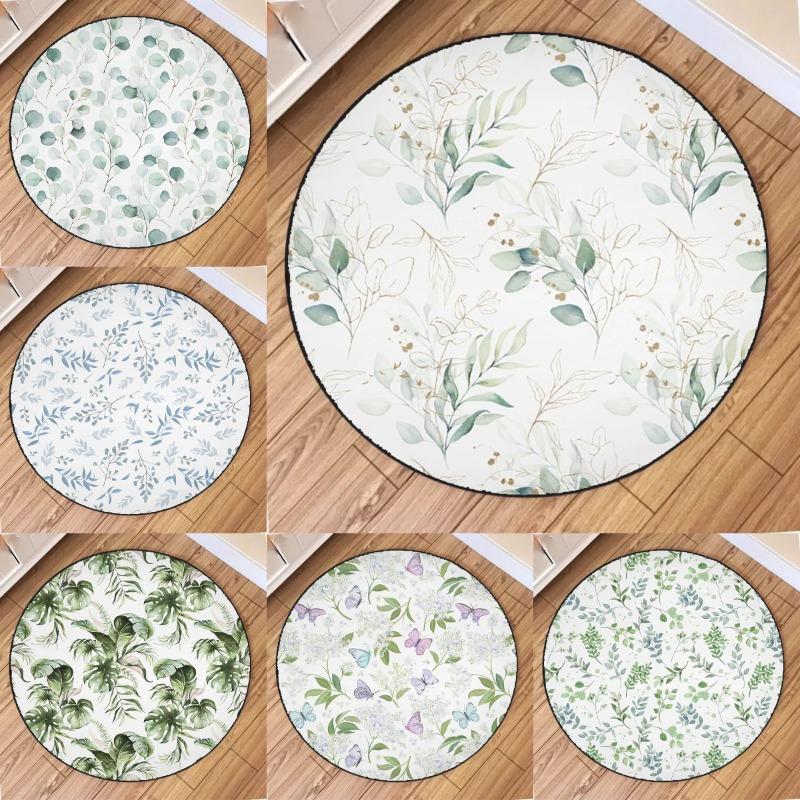 Minimalistisch Natur Aquarell Grüner Zweig Pflanzen Blätter Blumen Teppichmatte für Wohnzimmer Schlafzimmer Heimdekoration Teppich
