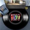 Retro Rockband Musik Schallplatte Runder Teppich Flanellteppich für Schlafzimmer Rutschfest Waschbare Fußmatte für Wohnzimmer Stilvolle Deko-Matten