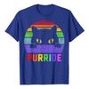 Pride Katze Purride Schwul LGBTQ Regenbogenflagge Retro T-Shirt Lustiger Kätzchenliebhaber Lesben Grafik T-Shirt Top Kurzarmblusen LGBT Geschenk