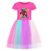 5227 Kinder Mädchen Steal a Brainrot 67 Six Seven Print Mesh Regenbogen Rundhals Lässig Lässig Baumwollkleid
