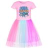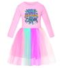5220 Kinder Mädchen Steal a Brainrot 67 Six Seven Print Mesh Regenbogen Rundhals Lässig Lässig Baumwollkleid