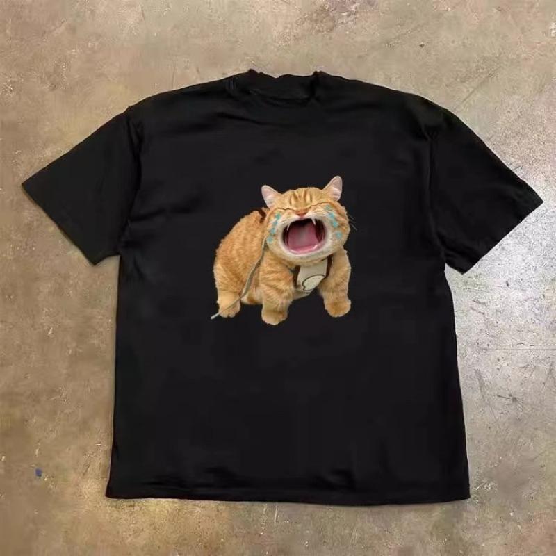 Neues Tear Cat Sommer Herren Damen T-Shirt Frühling und Herbst Paar Persönlichkeit Trend Locker Lässig Kurzarm Oberteil