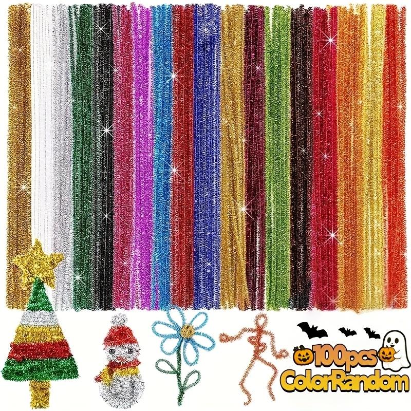 100 Shiny Plush Soft Iron Wires, Suitable for Art and Handmade Crafts, Mixed Color Decorations DIY Materials for Christmas Gifts