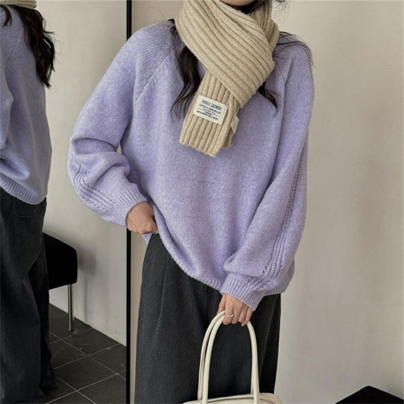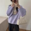 Lazy wind round neck pullover sweater women's autumn and winter new loose and thin soft waxy outer knitted sweater top