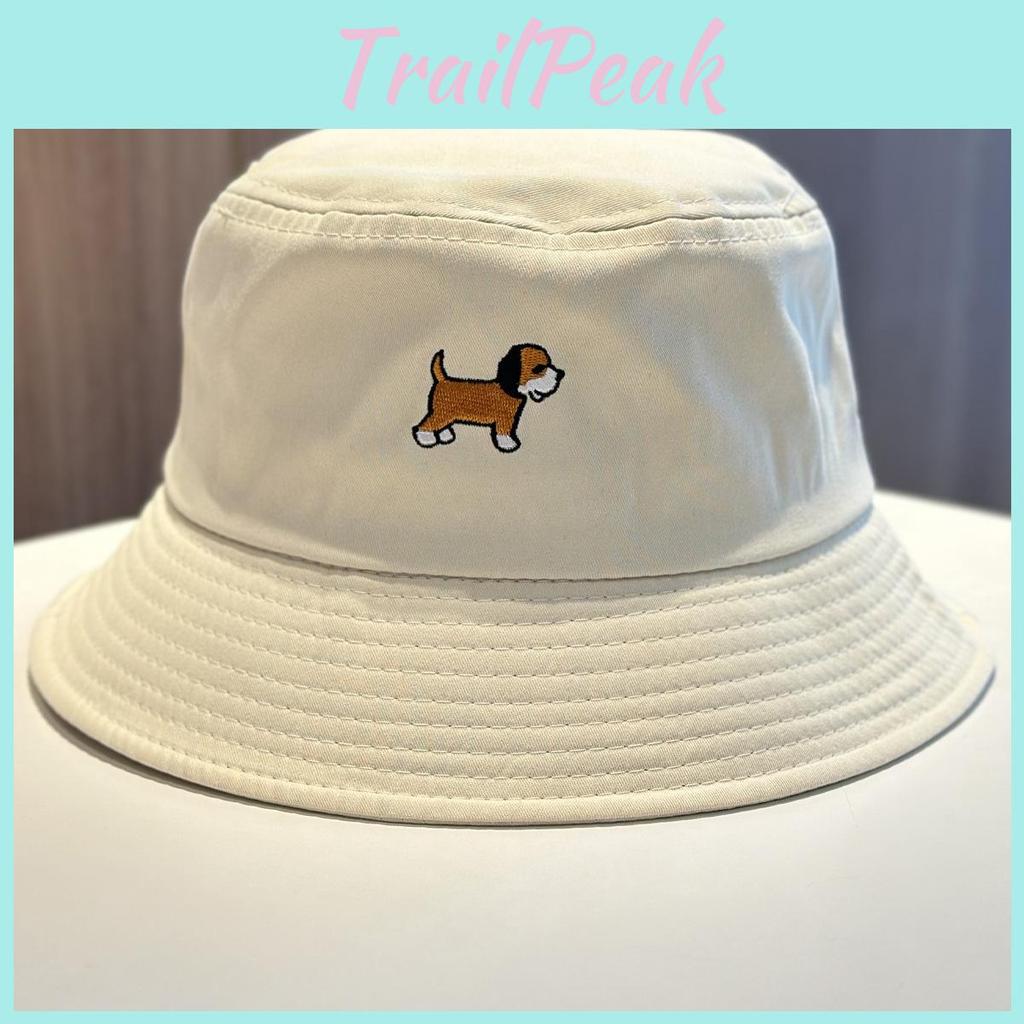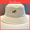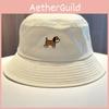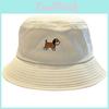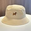 Womens Summer Cotton Embroidered Fisherman Hat With Cartoon Dog Embroidery Design For Sunblock