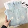 Milk Huhu soft waxy blue temperament short knitted cardigan sweater jacket women's small lazy style high sense