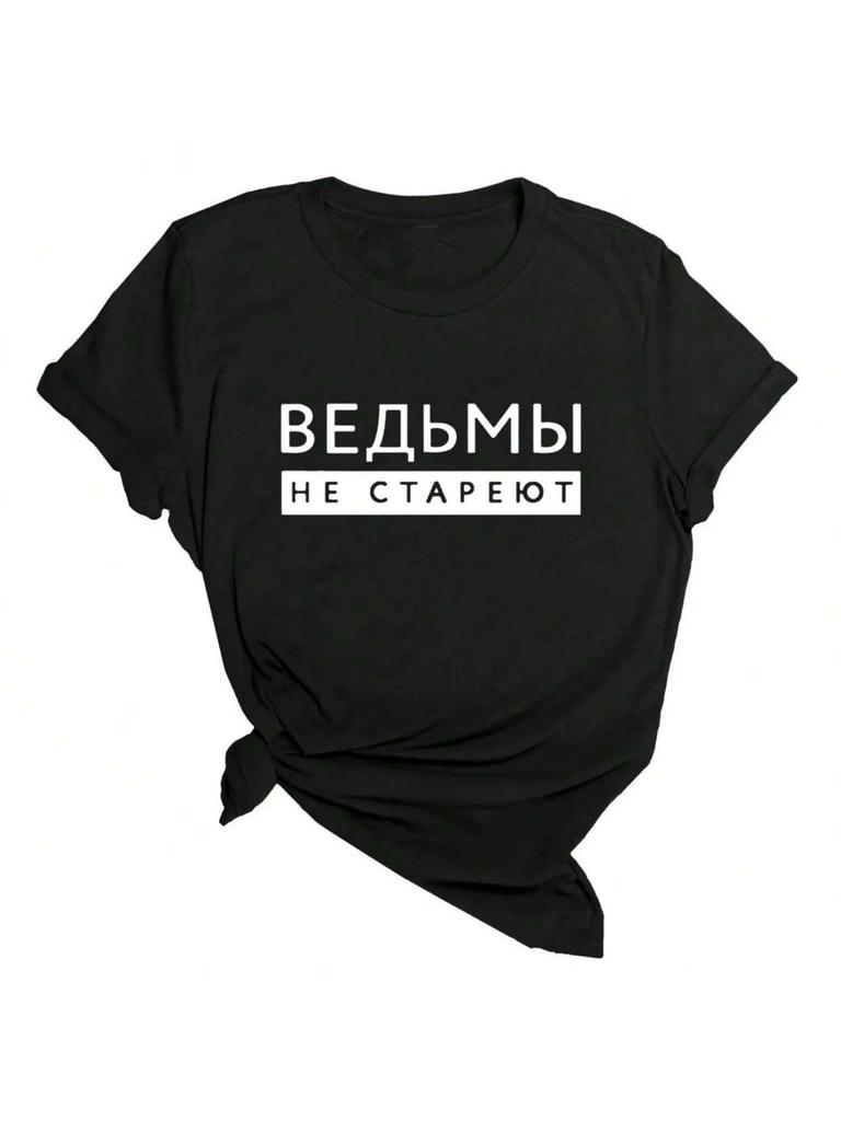 Witches Never Grow Old Russian Inscription Printed Women T-Shirt Summer Fashion Harajuku Short Sleeve Tee O-Neck Vintage Top