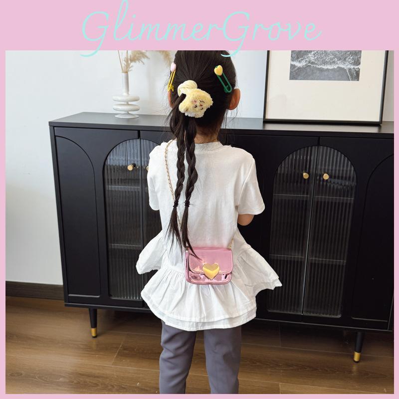 Pu Childrens Shoulder Bag With Heart Shape Mirror Surface For Girls Kindergarten Daily Use