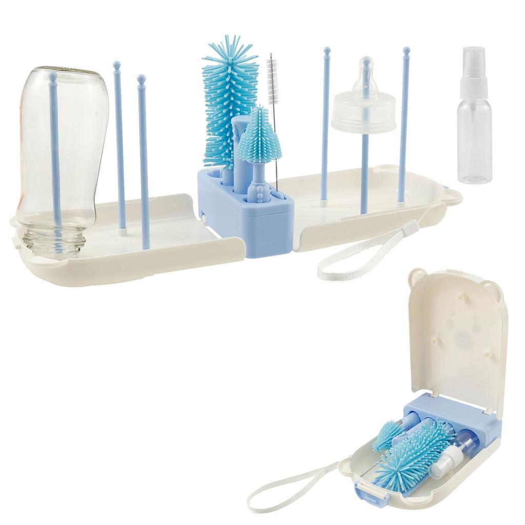 Bottle Brush Set Portable Baby Bottle Cleaner Kit with Silicone Nipple Brush Bottle Cleaning Tool Drying Rack for Home and Trave