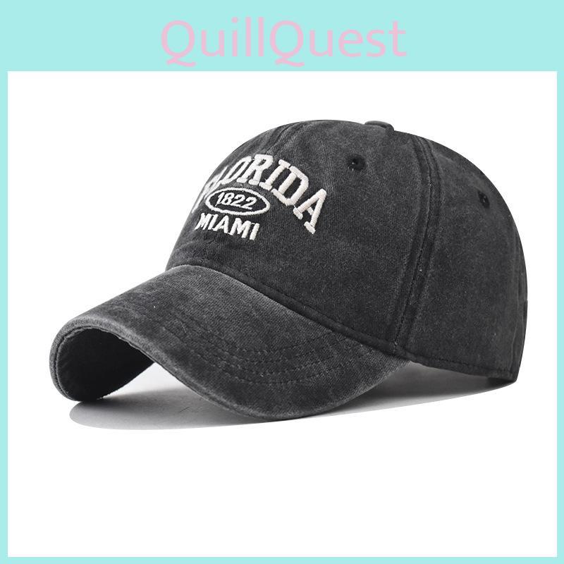 Florida Washed Cotton Baseball Cap With Embroidered Letter Design For Outdoor Sun Protection