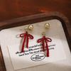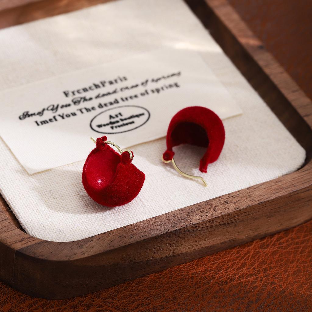 Red Velvet Drop Earrings Simple Dangle Fluffy Earrings for Women Autumn Winter Light Luxury Face Slimming Accessories