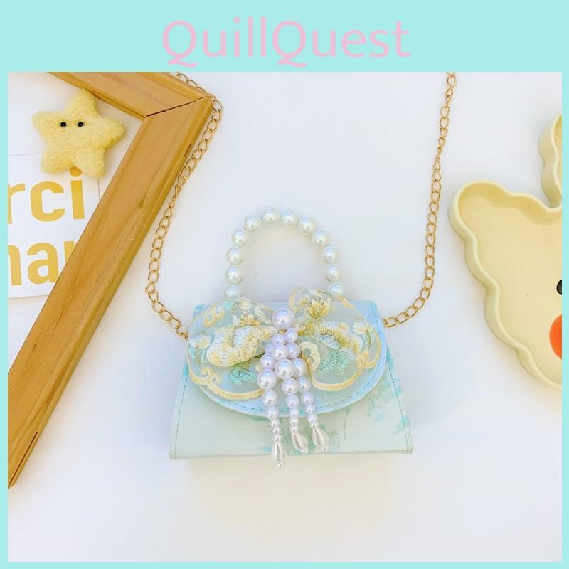 The New Chinese-style childrens shoulder bag combines traditional aesthetics with modern functionality, making it a versatile accessory for young girls. Designed with a butterfly knot and tassel detailing, this bag features a chic pearl-adorned chain strap and a durable polyester lining. Its compact, one-size design measures 8.5 x 6 x 3 inches, providing ample space for essentials while maintaining a lightweight profile. The bags all-weather protection layer ensures it withstands daily wear, making it ideal for kindergarten outings or casual outings.