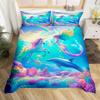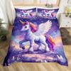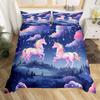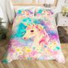Einhorn Pferd Bettbezug Set Queen Size Träumerisches Regenbogen Bettwäsche 3 Teile Kinder Teenager Buntes Funkelndes Galaxie Set 2 Kissenbezüge